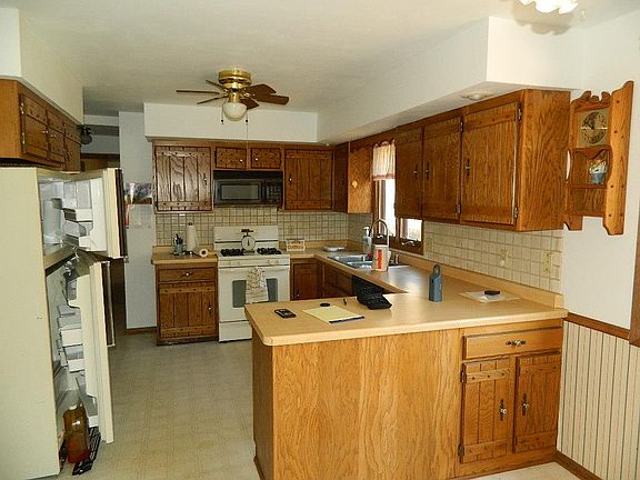 What a great opportunity to purchase a very large home with 4 bedrooms and 3 baths, 2 car attached and 3 car detached garage at a great price. Sellers are selling the home to settle their parents estate. Needs updating however the bones are good. New roof, updated vinyl siding, some updated windows, updated furnace. Main floor master bedroom with sitting area and private master bath. Main floor family room with fire place along with lower level family room. Some paint and carpet will go along way.Main floor laundry, 2 wood burning fire places, fenced in yard