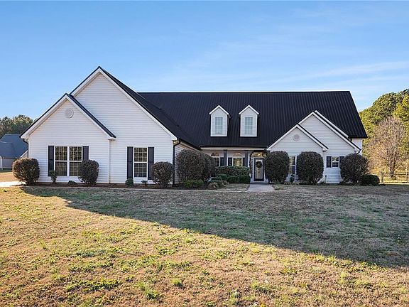 Experience peaceful country living in this spacious 4-bedroom, 3.5-bath ranch set on a private 3-acre homesite just minutes from I-75 and Tanger Outlets. Designed for effortless main-level living, the home offers an inviting, open layout with soaring ceilings, abundant natural light, and a seamless flow between the kitchen, dining, and family room. The kitchen features plentiful cabinetry, granite counters, a breakfast bar, and clear views of the main living area. A bright sunroom adds the perfect spot for morning coffee or extra entertaining space. The primary suite provides a quiet retreat with a large ensuite bath featuring a soaking tub, separate shower, water closet, and a generous walk-in closet. Three additional bedrooms on the main level offer flexibility for guests, family, or a home office. Outside, a covered patio overlooks the expansive backyard, fully enclosed with chain-link fencing — ideal for pets, play, or future outdoor projects. The 3-car side-entry garage and extended driveway provide exceptional parking and storage options. With convenient access to shopping, parks, and major highways, this home blends privacy, comfort, and everyday convenience in a beautiful 3-acre setting. Schedule your showing today!