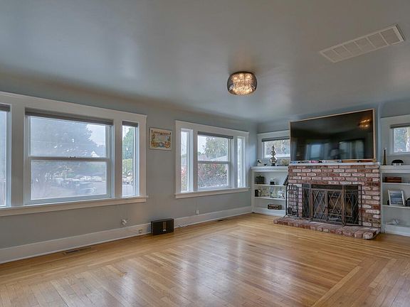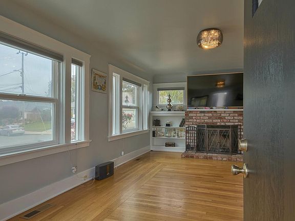 Welcome home! Perfect opportunity for First Time home buyers or investors. Lovingly well maintained two bedroom one bath on a large lot perfect for outdoor living. Original hardwood flooring and original moulding throughout. Tons of natural light, blackout shades have been installed in living room and master bedroom Large living room with brick fireplace centerpiece and built in shelving. Kitchen boast new vinyl water resistant planked flooring. Separate dining area with built in hutch and hardwood flooring. Both bedrooms have newer carpet and walk-in style closets. Charming bathroom updated with new vinyl water resistant planked flooring. New light fixtures throughout. Freshly painted inside and out. Full length balcony style deck. New gutters. Driveway has been re-paved. Extra large lot with room for Boat or Trailer parking including two storage sheds. Plenty of outdoor living space with mature fruit trees. Conveniently located to highway access.