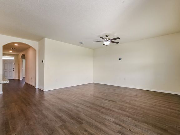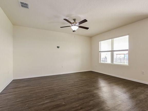 Please note, our homes are available on a first-come, first-serve basis and are not reserved until the lease is signed by all applicants and security deposits are collected. This home features Progress Smart Home - Progress Residential's smart home app, which allows you to control the home securely from any of your devices. Apply and get approved to lease this home by January 7, 2025, and receive $1,500 toward move in fees plus one month free on your first full month's rent. Want to tour on your own? Click the "Self Tour" button on this home's RentProgress. A neat, grassy backyard is ideal for hosting gatherings for your favorite people at this three-bedroom, two-bathroom Kissimmee rental home. The living room has a lighted ceiling fan, beautiful flooring, and windows overlooking the patio. Access the patio via the sliding door in the adjacent dining room, where windows overlooking the backyard welcome sunlight into the room and there's plenty of space for a dining set. The two rooms share an open space with the kitchen, where recessed lighting offers additional brightness. White cabinetry and a pantry provide ample storage for dry goods. Stainless steel appliances complement the cabinetry and beautiful counters, including on the island. Arrange a time now to view this Florida rental home.