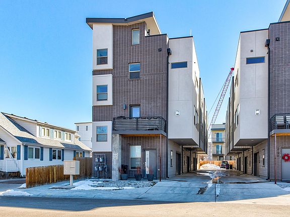 Property available for lease 4/1/2025 Property tours available starting 3/14/2025. Friday, Saturday & Sunday: 8AM-5PM Modern living at its finest with high-end finishes, an abundance of natural light and incredible rooftop mountain views with this end-unit townhome! Bottom floor large entry foyer with ample storage and a convenient half bath, and access to the easy-maintenance, fenced, private & irrigated backyard. An open concept living/dining/kitchen is found on the 2nd level as well as a 1/2 bath. This living space is enhanced with gorgeous maple hardwood floors, abundant natural light and a gas fireplace. Modern kitchen with high-end Frigidaire stainless steel appliances, plenty of white shaker cabinetry, sleek quartz counter tops with a large eat-in island. A glass door that leads to a private balcony easily extends the indoor/outdoor living and entertaining space and is perfect for a grill and outdoor dining set. Journey up to the 3rd level to the home's two bedrooms, 2 full bathrooms and stackable GE front-load washer and dryer with water sensing shut-off system. The primary bedroom features a private ensuite bathroom with double vanity, flat-screen TV mount, contemporary ceiling fan and walk-in closet. A private, spacious 4th level rooftop deck with striking mountain views is an ideal entertaining spot. The 1-car attached garage contains ceiling-mounted storage shelving and a slat wall for utility storage. High-end features include exterior windows with a mirrored finish to ensure personal privacy, Ring doorbell at the front door, Ecobee smart thermostat, smart switches for garage lights and backdoor light, and cellular blinds on north & south-facing windows. Fantastic location close to shopping, Denver University, parks, restaurants, activities and only 3 blocks to Colorado Station RTD Park and Ride, providing quick access downtown, to DIA or the Denver Tech Center. Water, trash and snow removal included in rent. Tennent responsible for gas & electric, internet and any other utilities. Rental insurance required. Non- smoking property. Dogs considered for an additional fee. Application fee $30, following screening and property viewing. Single car attached garage. Street parking available but not assigned. Contact owner via email for phone screening and to set up viewing. Property available for move in on April 1, 2025. Tenants subject to income verification, reference check, background check.