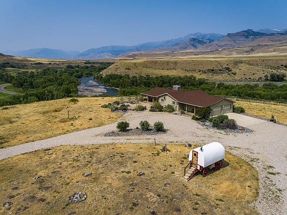 Views, Views and More Views! Beautiful, unique, private property with gorgeous views in every direction and out every window. From the elk that frequent the hills to the south, horses and deer frolicking in the fields below, to expansive views of the riverbed and mountains from the living room windows - it is like living in a nature program! Bring your horses, this location is a dream for exploring nearby public land. The home itself has been redone from the roof to the rim joists over the last 20 years and is beautifully maintained and set up for ease of living/entertaining. Renovations and additions to the property (mostly by Tom Quick Construction) include: barnwood front door with custom art by Eric Thorsen; solid core interior doors; spray foam insulation in crawl space; baseboard custom painted to match barnwood; new water pump for baseboard; reconfiguration of interior walls to include new guest bathroom, laundry area, utility room and mudroom; upgraded bathrooms and fixtures; appliances; flooring; river rock fireplace; slate tile and flagstone on porches and deck (masonry by Donnie Anderson); custom cabinets; shingles by Jess’ Roofing; interior/exterior painted to match surroundings; buck/rail fencing; horse loafing shed and hay storage (12’x60’ total); two 10’x12’ sheds; automatic irrigation system around house and fields; new UV water filtration system; 3 double insulated Pella windows in living room; whole home A/C and more. Wild, beautiful WY right out your door!