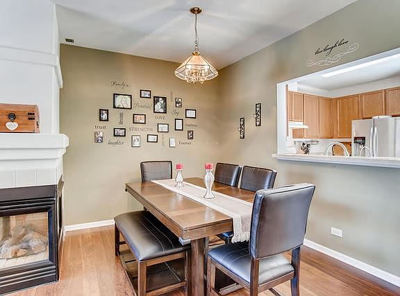 SUNNY AND SPACIOUS 3-BEDROOM TOWNHOUSE-STYLE-CONDO IN SECLUDED CUL-DE-SAC, BACKING UP TO FOREST PRESERVE, WALKING AND BIKE TRAILS. You will love the bright and open floorplan with gleaming wood laminate floors; large window lights up room with natural sunlight. Enjoy your morning coffee, warming up in front of your 3-sided fireplace in the cozy living room. The chef of the family will appreciate the huge pantry and bountiful cabinet and counter space, stainless-steel refrigerator and breakfast bar. Sliding patio door opens up to a private balcony with a partial view of the forest preserve. Master bedroom features vaulted ceiling, private bathroom, and huge walk-in closet. The second bedroom suite also has it's own private bathroom, beautiful bay window with built-in bench and lighted shelves. The third bedroom in the finished English basement can easily be converted to an office or exercise room. New carpet in the basement and stairs, new hot water heater in 2019 and newer garbage disposal. Attached 2-car garage; 4 designated parking spaces including driveway! Laundry room on main level. Quiet street with no thru-traffic, conveniently located minutes from 355 and 290 expressways, shopping, restaurants, and dog park.