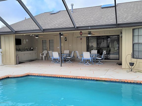 Beautifully kept 3 bedroom pool home. This home has an open plan walking into the living room. Kitchen has refrigerator, stove, microwave and dishwasher. Breakfast nook looking out to the pool. Breakfast Bar. Wet bar. Large master bedroom with walk-in closet. Master bathroom has jetted tub, separate shower, double sink and even a phone. Second bathroom has entry to the pool. Indoor Laundry room. Carpet & tile throughout. Inground pool with fountain. Circular driveway.