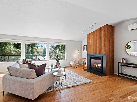 This Beautiful Mid-Century Modern is situated on a quiet cul-de-sac, providing plenty of privacy. Vaulted great room features gas fireplace & chef kitchen, 5 bedrooms include a spacious primary bedroom with en-suite bathroom & 2 walk-in closets. Enjoy modern comforts such as tankless hot water & electric mini split for heating & cooling, along with fresh paint throughout, newer roof & gutters, slate counters, bamboo & LVP flooring, updated bathrooms & easy plumbing connections for lower guest suite possibilities w/ separate entrance. Other luxuries include skylights, custom millwork, a gazebo/hot tub area, large backyard, fire pit, expansive deck & RV parking. 12,000+ sq foot lot! Located in the award-winning North Shore School District.