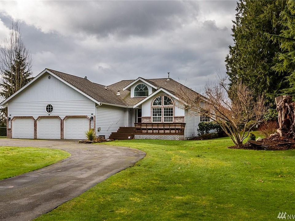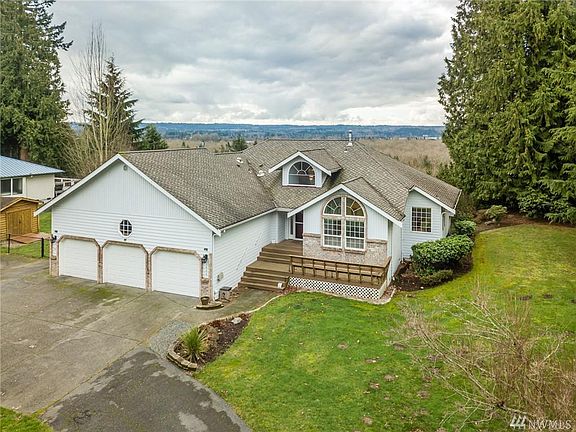 Welcome home to this beautiful Eagle Ridge gated Community. Close to I-5 and fun, home has view of the Olympics + has access to the Stilly River all on 6.7 acres. This well maintained home features 3 bedrooms on main level plus office and bonus downstairs. Open kitchen with granite countertops and eating bar. 5 piece master bath off the large master bedroom. Lots of storage throughout. Newer heating system with heat pump/ AC and a large deck for the view and nature, RV parking + 3 Car gar.