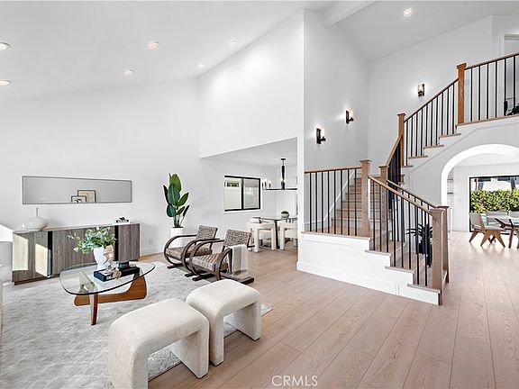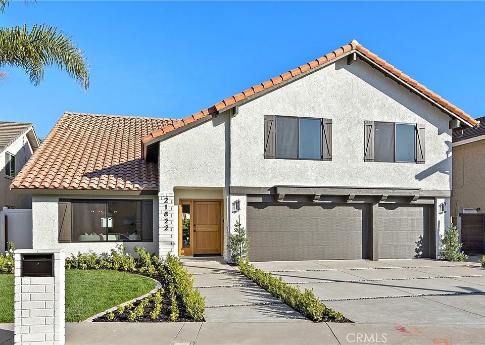 Nestled in the sought after South of Hamilton pocket of Huntington Beach, occupying an interior location on an oversized lot, 21822 Oceanbreeze Ln effortlessly blends modern Spanish charm with luxury beach living. Extensively renovated and refreshed, this expanded and turnkey 3,432 +/- s.f. coastal residence features an eminently livable floor plan comprised of open living spaces, 5 bedrooms and 4 bathrooms. Step through a custom made White Oak Dutch door, leading you into a formal living room complete with soaring vaulted ceilings, luxury vinyl plank flooring and a crisp light and bright interior. Adjacent to the formal living area, you will find a dining room with a modern chandelier which provides a perfect place to share meals with family and friends. An impressive chef’s kitchen is the heart of the home with stunning Cloudburst Concrete countertops, custom shaker style cabinetry, oversized center island complete with white oak cabinetry, a full suite of Thermador built-in professional appliances, and a double-door pantry. Epitomizing open-concept living, the kitchen adjoins the family room that features a smooth stucco fireplace and expansive 12 foot bi-fold door creating a seamless indoor/outdoor transition to your rear yard. The first floor is completed by a bonus room ideal for a gym, playroom or potential ground floor bedroom, designer-appointed bathroom with shower, and laundry room. Upstairs, an appealing bedroom configuration awaits starting with a spacious primary suite with en-suite bath complete with dual vanities, walk-in rain shower and soaking tub in addition to a custom closet build out. Three additional bedroom suites and two bathrooms (one en-suite) complete the second floor. Ideally suited for entertaining, the rear yard features a pool and spa, fire pit and combination of low maintenance turf and new concrete. Both the front and back of the property feature all new hardscaping, landscaping and irrigation systems. A 3-car garage with epoxy floors and new garage doors completes this exemplary home. Set in a prime location within immediate proximity to a neighborhood park, only a mile to enjoy the surf and sand of Huntington Beach and close the area’s award winning schools. This exceptional locale is just minutes from all your daily needs, Newport Beach, Costa Mesa and freeway access.