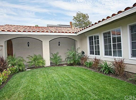 Stunning highly upgraded single level home with a pool and spa on a 10,454 square foot lot in a very private setting!! Through the front gate is a spacious landscaped courtyard area leading to the designer front door. This home offers an open and light floorplan that takes advantage of the beautiful outdoor living spaces. Features include new travertine flooring throughout, large living room with a majestic stack-stone fireplace and formal dining room. Kitchen is showcased with custom wood cabinets, granite countertops and stainless steel appliances including a built-in Monogram refrigerator, Italian designer gas range, dishwasher and microwave in the center island. Adjacent to the kitchen is an informal dining or family room area that opens out to a large wrap around patio area. The master bedroom also opens out to the pool area. Additional features include indoor laundry room, newer dual pane windows and sliders, 6" baseboards, mirrored wardrobe doors, recessed lighting, Pex plumbing, and rain gutters on rear of home. Garage is finished with drywall and has pull-down stairs to access storage above. Tile Roof, furnace and a/c are approx. 10 years old. Member of Lake Forest Sun & Sail Club.