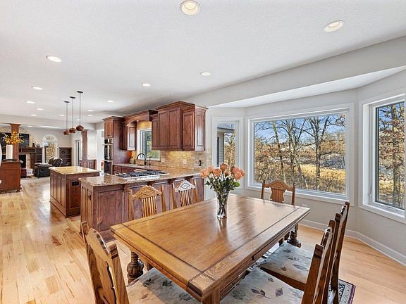 Prime location for the serenity you’ve been dreaming about, yet only short drive to Lakeville’s amenities! Nestled on private 4 Acre lot, beautifully renovated modified 2-Story features comfortable living spaces thru-out, finished walk-out LL & amazing panoramic views of adjoining wetland & wildlife! Bow-hunting allowed for trophy Whitetail! Well-appointed Kitchen will inspire w/its gas cooktop, dbl wall oven, Cambria ctop & stunning cabinetry! Kitchen opens into Great Rm w/gas FP, while vaulted Sun Rm features amazing treetop views o’rlooking wetland area! Both spaces have patio drs leading to composite Deck. Main level is complete w/home Office, Laundry Rm & great storage! Inviting 2-Story Foyer showcases stairway to UL w/3 Bdrms, incl spacious Primary Ensuite w/striking views to Bkyd & wetland! LL features Amuse Rm w/gas FP, wall of custom built-ins & adj Wet Bar. Lg Family Rm w/in-flr heat & attractive media wall. LL is finished w/2 Bdrms, ¾ Bath & Lg Storage Rm. Heat/Insul Garage.