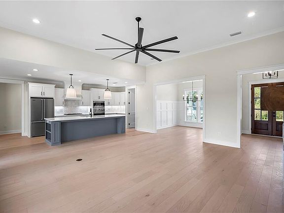 Step inside this beautiful, uniquely designed home, built by Tower Homes, a single-story layout that blends timeless style, modern comfort, & functional living. At the heart of the house, the spacious living room with a gas fireplace flows seamlessly into the kitchen & breakfast area, creating an open setting perfect for gatherings or everyday life. The chef's kitchen boasts an XL center island with bar seating, abundant cabinetry, elevated Viking brand appliances, & a walk-in pantry, "messy kitchen," featuring extra outlets, cabinetry, & a small sink, ideal for keeping appliances tucked away & your main living space spotless. The private primary suite is a true retreat, offering dual vanities, a soaking tub, a separate tiled shower, & a walk-in closet. Three additional bedrooms provide flexibility & comfort: two share a convenient Jack & Jill bath, while the third enjoys its own en-suite. A formal dining room with elevated wainscoting & an entry foyer adds architectural elegance, while the covered back porch extends living outdoors. Clever design continues with a spacious laundry room with a utility sink, a guest half bath, a drop zone off the 2-car garage, & plentiful storage throughout. Located in The Verandas, just off Hwy 181, residents enjoy community amenities including a pool, clubhouse, & beautifully maintained common areas. Perfectly positioned only 10 minutes from Downtown Fairhope, you will have quick access to boutique shopping, dining, schools, & the bayfront. With its balance of open-concept living, private retreats, and neighborhood amenities, this home offers the best of Fairhope living. Gold Fortified, the home includes a 1-yr builder warranty, 10-yr PWSC structural warranty, & a 1-yr termite bond with Formosan coverage. One or more principals of the selling entity are licensed real estate agents & or Brokers in AL. Floor plans are for example only. Buyer to verify all information during due diligence.