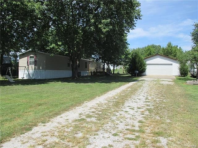 Get away destination within walking distance from Carlyle Lake. Public boat dock is nearby. This is a 16x70 Clayton Manufactured Home sitting on two lots with all electric detached two car garage. Split bedroom design with open floor plan. Eat-in kitchen and living room have vaulted ceiling. All appliances are included. Comes with a 12x12 wooden deck built in 2013 and is shaded with mature trees. New air conditioning unit in 2015. Home is all electric and has city water. Well water for 1/2 bath and kitchenette located in 24x30 garage, plus cabinetry. Septic serves both home and garage. 36 walk-in door added in 2013. New garage roof in 2014. Home needs some work and is being sold as is - seller will not make any repairs. With just a little sweat equity, it will make the new owner a nice weekend home or even a permanent residence. Nice yard and quiet neighborhood.