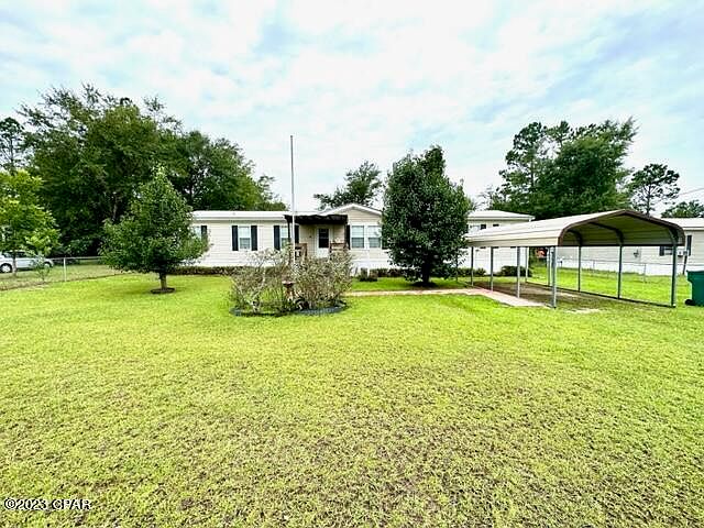Spacious 3 bedroom 2 bath Manufactured home on a little over a half acre. The home features a large spacious master bedroom with an adjoining sitting room and master bath with a garden tub. There are two separate living areas and a large kitchen with a center island. The property is fenced. There was a fourth bedroom and it was converted to a office/play room, could add closet back and make it a bedroom. Large outdoor Pavilion and a outbuilding for storage. Close to the Dollar Store in Grand Ridge.