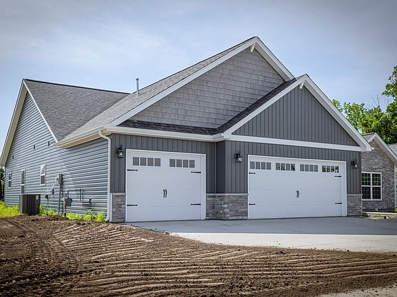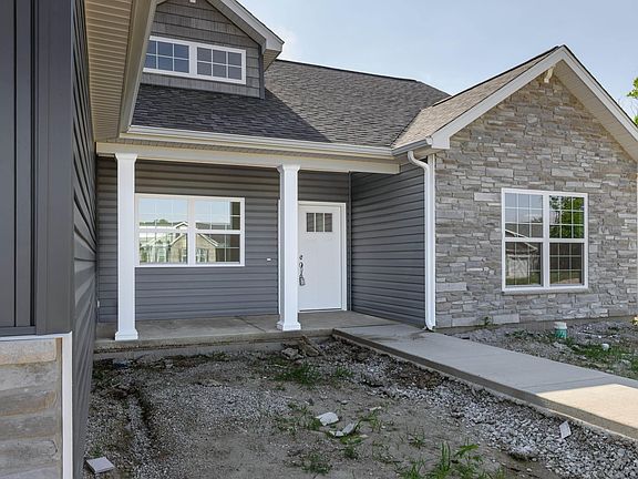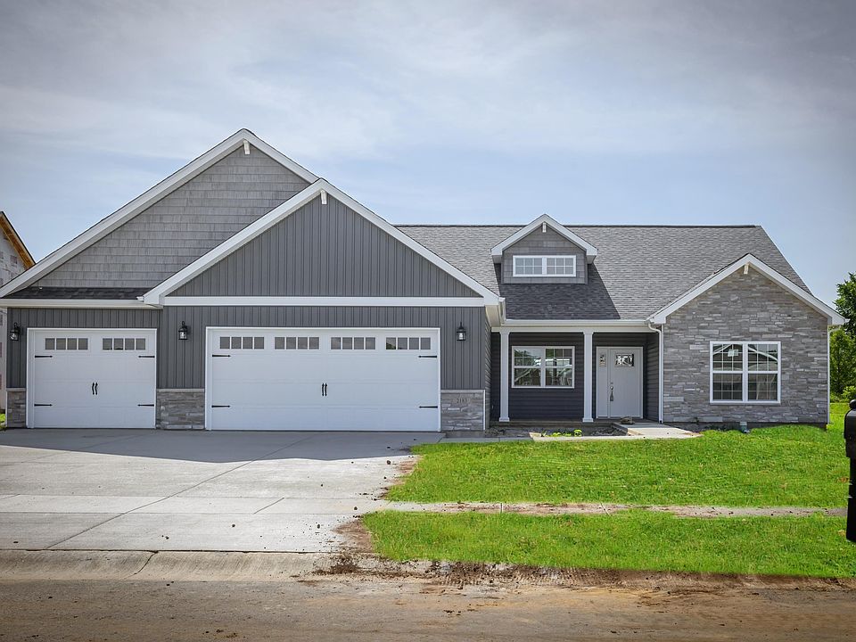 NEW SANTEE floor plan by Majestic Homes in Western Schools in New Autumn Woods Subdivision. 2050 sq.ft. offering 4 bedrooms, 2.5 baths, with Covered porch in back. Step into large foyer leading to large Great Room with cathedral ceilings and gas fireplace. Large bank of windows in spacious Great Room and open kitchen with large island with flush bar for everyday eating. Kitchen offers stainless steel appliances and large walk in pantry and under cabinet lighting and large dining room. This is a split bedroom floor plan with owner's suite on one side offering huge bath with tiled walk in shower, double bowl vanity and bedroom or den at front of house. Other side of the house offers 2 more bedrooms and full jank and Jill bath. Laundry room and separate mud room with lockers for open space for hanging coats upon entering from garage along with adjoinging half bath. 3 car attached garage. Very attractive stone and vinyl exterior with front covered porch.