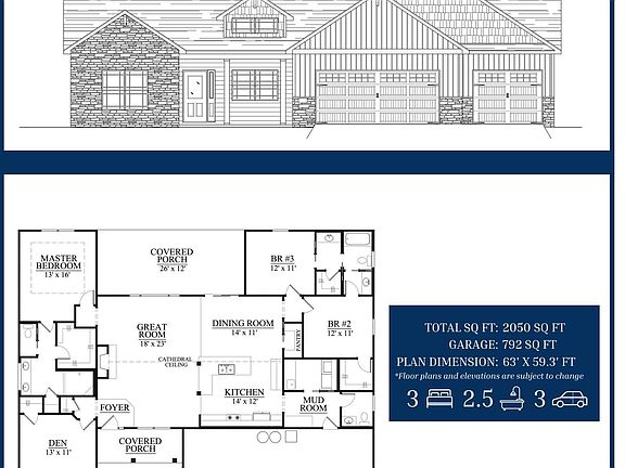 - Total interior livable area: 2,050 sqft
