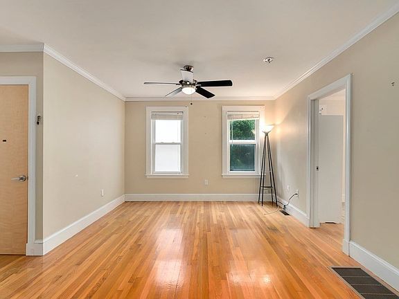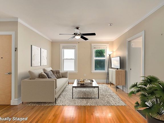 Charming 2-bedroom condo with a private back deck. The spacious layout is open and has hardwood throughout. The kitchen is just off the living room and has granite counters, recessed lighting, stainless steel appliances, and ample cabinetry for storage. There is also laundry and a full bathroom. Both bedrooms have good space and are on each side of the living room. 1 deeded parking space. Additional large storage room in the basement. Great location with easy access to public transportation and major highways!!
