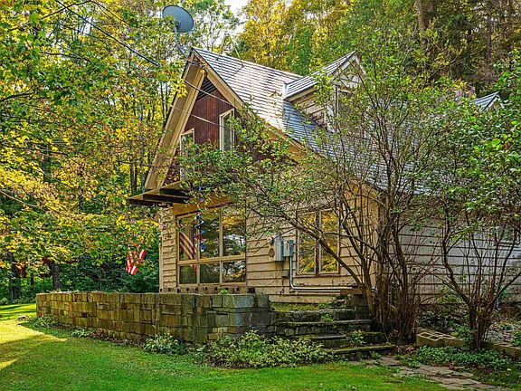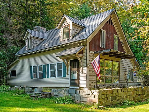 Situated on 8+ acres, this 3 bedroom 1.5 bath home has a big front yard with mature trees and nice views. The wrap around patio and covered entryway porch are ideal for relaxing outdoors with a morning cup of coffee or a nice glass of wine. Inside, the open kitchen and dining area connect to the mudroom which leads to the garage. Through the kitchen is the large living room with an abundance of windows and natural light. There is a beautiful granite stone fireplace with a pellet stove to keep you warm on cold winter days. Through the living room is a private den/office, and rounding out the first floor are a full bath, laundry room, and a cedar closet. Upstairs are the primary bedroom, two additional bedrooms and a half bath. The attached two car garage has a heated workshop and plenty of storage above. Recent upgrades include a new roof, a new septic tank, and a whole house generator. This property also has a Maple Grove in the woods out back and has been tapped for Maple Syrup in previous years. Great location just a few miles from the Barnard General Store and Silver Lake.