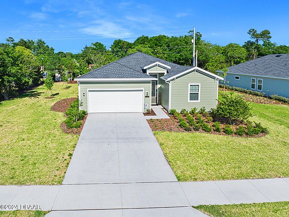 WANT a fenced-in yard? Sellers giving $5,000 in concessions for one or toward your closing costs. With this newly-built (2024) dream home on a premier corner lot, you will have it all. This serene neighborhood is just minutes from Tomoka State Park, lush nature trails, restaurants, shopping and beautiful beaches. Why wait to build, when this 2024-built home is ready for you without any delay and comes with a transferrable builder warranty! This 4 bedroom, 3 bath meticulously crafted, split floor plan home spans 2028 sf of living area. Upon entering through the striking 3/4 glass front door with transom glass above, you are greeted by a beautiful wide foyer with an 11' ceiling. Combined with the 9' ceilings and 8' doors, this creates an open and airy atmosphere. Located at the rear of the home, the large primary bedroom features 2 walk-in closets and a large en suite bathroom with a linen closet, dual sinks, quartz countertop, shower and separate soaking tub. The 4th bedroom with its own bath can serve as a second primary bedroom. Revel in the beauty of wood-inspired tile flooring, offering the warmth of hardwood with the durability and easy maintenance of tile. The spacious kitchen features 42" cabinets, ample quartz countertops, a lighted pantry, and a large island with barstool seating. Extend your living space outdoors with an 8' triple slider leading to the screened-in lanai. Inside laundry area leads to the 2 car garage. Great location with access to I-95 nearby.