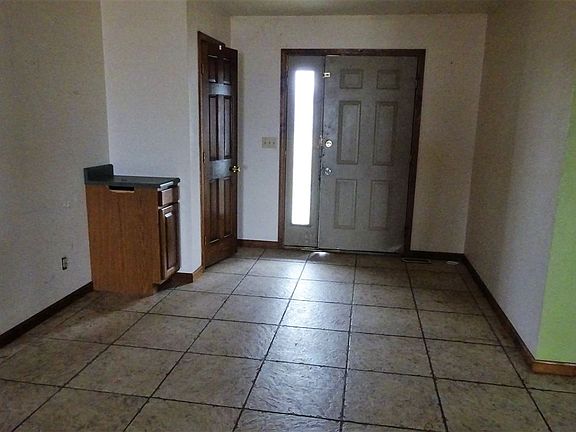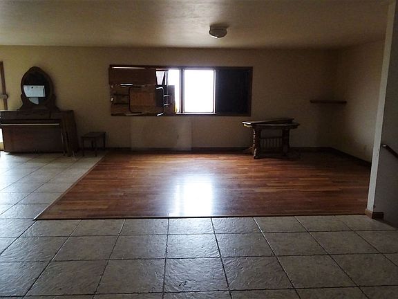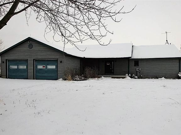 44.1 acres w/32 tillable; 3 pole barns; 1944 SF main w/full finished basement built in 2000; 5BR/2.5 baths; 28x34 attached 2-car garage; Stamped concrete patio & garage floor; House has no furnace, wiring cut @ breaker box & water lines for wood boiler are cut;