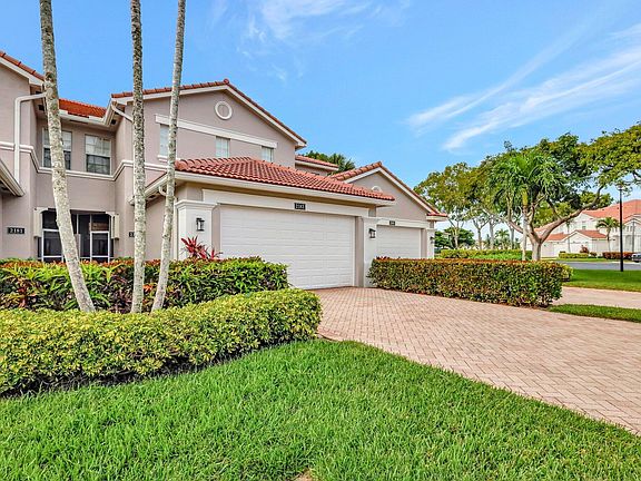 Welcome home! Mayfair is a desirable 55+ gated community in the heart of Wellington. This well-kept, first-floor end unit offers a two-car garage and a spacious split floor plan for privacy. The open-concept kitchen, breakfast nook, living, and dining areas are perfect for entertaining. Enjoy your morning coffee on the screened-in patio overlooking the canal. The primary suite features his and her closets and scenic views. Updates include a new roof (2024), fresh exterior paint, new gutters, and lighting. Residents enjoy a clubhouse, heated pool, and fitness center, with restaurants and shops within walking distance. Don't miss this move-in-ready gem!