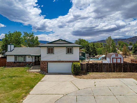 This FABULOUS pool home is one you will not want to miss!Located in the desirable community of Golden Hills, only a couple of minutes from town, this home is set far back from the road, perched up on a hill with some magnificent mountain and valley views.With a fully landscaped front and backyard and a fenced inground pool out back, sitting on over a half-acre of usable land...plenty of room for animals, children and toys...this gem features a tri level floor plan with just under 2,400 square feet, a spacious family room with a stone stacked fireplace, a super cute, updated kitchen with new appliances and a farmhouse sink, a large master suite and well-appointed ensuite, two additional bedrooms and bathrooms, a BONUS 4th room perfect for your home office, gym or additional bedroom, new flooring throughout, a new HVAC system, and OWNED solar eliminating your energy bills each month.The exterior is AMAZING with multiple entertaining areas. There is a beautiful deck off of the master, a covered back patio with a hot tub, and of course, the deck around the pool for those hot sunny days.