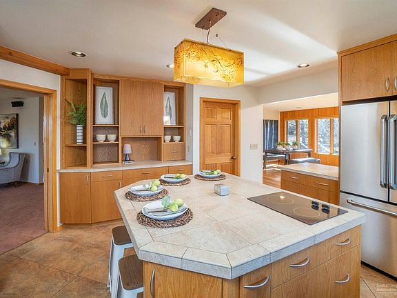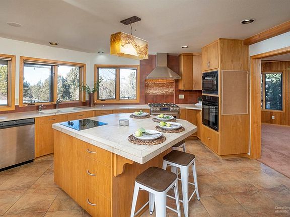 This one of a kind home sits on 14.97 gorgeous acres at the end of Los Serranos Drive, just minutes away from downtown Bend. Featuring spectacular Cascade Mountain and Smith Rock views, this amazing property features a separate pool house with retractable roof, full kitchen, bathroom and showers. The mid-level includes a kitchen with large pantry and views of the Cascade Mountains, multiple living areas, office, full bath and bedroom. The upper level includes a master suite with private patio, two bedrooms with Jack & Jill baths and upper crow's nest viewing deck. The lower level includes two bedrooms, bath with living area/in-law, possible nanny's quarters. With two water features, a pond, fruit bearing trees, a shop, solar panels, 1.90 acres of COI irrigation, and no HOA fees, this beautiful property is a must see!