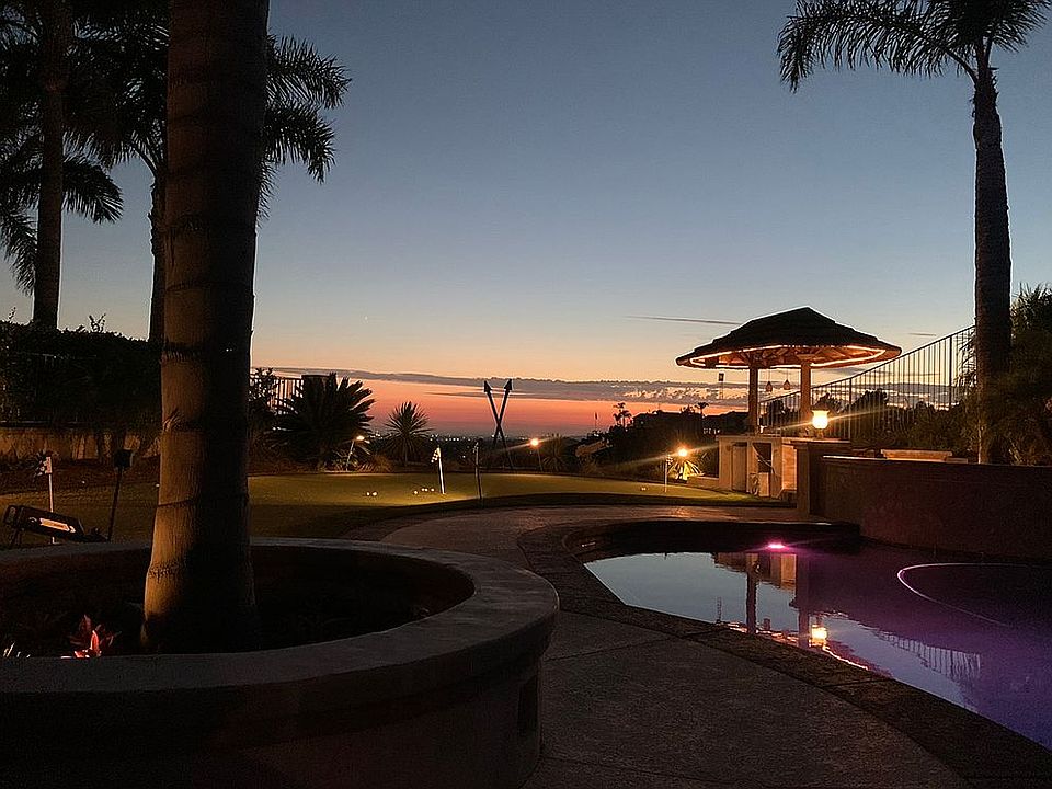 Large custom backyard Custom pool , water falls built in slide Putting green and mock driving range for golf lovers. built-in barbecue tiki bar at the end of property with spectacular views to Catalina! Artificial turf throughout front and back yard fire pit basketball court fire tiki torches throughout property . Brand new custom glass garage doors. Built in cabinets and attic in garage for storage.