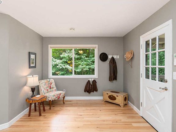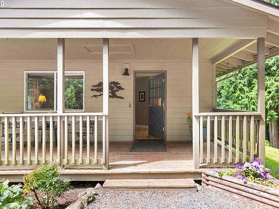 Truly rare find! Gorgeous one level home with classic covered front porch, perfectly positioned covered back deck to sit and relax overlooking a flat acre of grass, gorgeous deer-proof garden with raised beds, TWO shops, and an acre of trees in timber deferral. Completely private in a forest yet sunny and usable acreage. New hardwoods throughout! STUNNING kitchen with quartz counters and eating bar with live edge wood top. Master suite with walk-in closet and walk-in shower. So much goodness!!