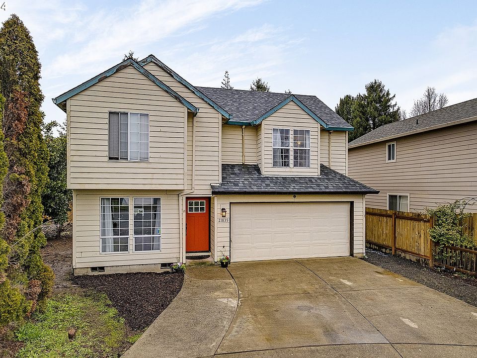 1912 sq ft home situated in a quite cul-de-sac on .12 acre lot. 4 bed 2.5 bath. You will enjoy this open floor plan that offers formal and family living spaces. Laminate flooring throughout the entire home. Vaulted ceilings which creates a spacious feel in the family room area plus gas fireplace for cozy evenings in. Recently updated kitchen with freshly painted cabinets, newer stainless steel appliances 2022, and corian countertops. Primary bedroom offers walk in closet and dual vanity and skylight in bathroom. Updated furnace in 2020. Roof replaced in 2015. Spacious backyard partially fenced with patio for BBQs and entertaining. Conveniently located by schools, shopping center, parks and minutes to freeway. Great location for Intel and Nike commuters.