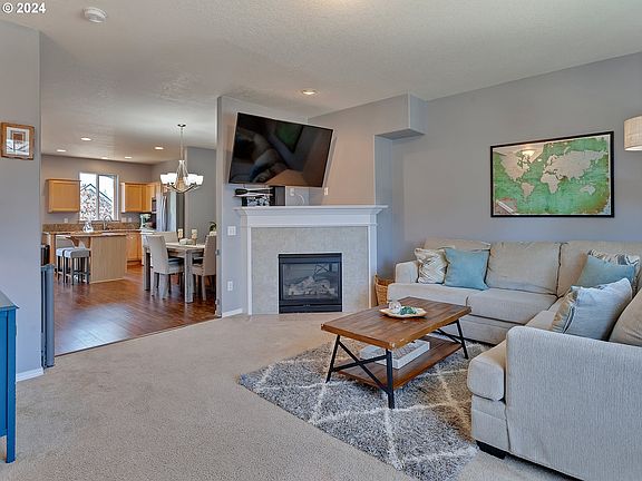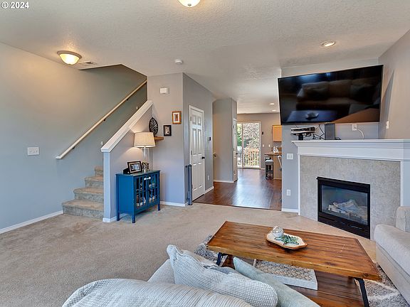 Welcome to this wonderful townhouse in this sought after, charming community that's close to all the area has to offer! Featuring over 1,500 SF with 3 Bedrooms, 2.1 Bathrooms, a fenced backyard and an oversized 2 car tandem garage, complete with added storage! You're sure to love the inviting open floor plan with spacious living room boasting large windows and a cozy corner fireplace. This open and light filled living room flows into the dining room with laminate flooring, kitchen slab granite counters, eat-island and plenty of cabinetry, along with a nook area right off the back deck, overlooking mature trees and timbers providing added privacy in the background. You'll find three bedrooms and a laundry room upstairs, including the large primary suite with tray ceiling and large closet. Both additional rooms offer high ceilings, and one features a wainscoting accent wall. The low-maintenance front yard comes with exterior landscape maintenance from the HOA, and the easy maintenance backyard is fenced and features a patio area. The location couldn't get any better being so close to Old Town, area parks, the YMCA, shopping, dining, great Sherwood schools, easy access to 99W and all the area has to offer!