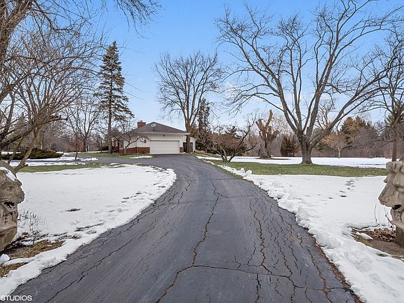 This Barrington landmark and its Iconic Hi Yo Silver sign has served as a welcome gateway to the communities north of the Village of Barrington since 1953. Set on what is said to be one of the highest points in Lake County, this 3BR/2BA ranch with hardwood floors and bay window, on over 4 acres of land, can be a move in fixer upper, a remodel or a site for your dream home. Wonderful curb appeal, a full basement, a main level pub with a fireplace, a 3 season room, over-sized 2 car garage and a circular driveway, make this a wonderful place to entertain. Award winning Barrington Schools as well. This property is zoned for up to 4 horses. Please note very low taxes. Entrance on Drake Rd. Come see this as-is landmark.