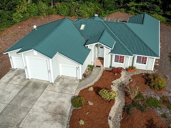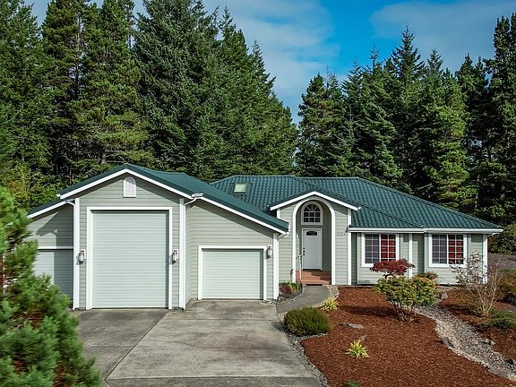 Nestled atop a gentle hill in a peaceful cul-de-sac of Munsel Creek Estates, this one-owner custom home offers the perfect blend of privacy, practicality, and charm. With 1684 square feet of thoughtfully designed living space, the home features three spacious bedrooms and two full bathrooms, including a primary suite with a generous walk-in closet. The heart of the home is warm and inviting, with natural light pouring through well-placed windows and a layout that flows effortlessly from room to room. Step outside to enjoy raised garden beds ready for your seasonal harvests, all within a serene setting that feels worlds away—yet is conveniently close to shopping, dining, and everyday essentials. A standout feature is the massive 1,250 sq ft attached three-bay garage, ideal for RV or boat storage, hobbies, or a workshop. Topped with a durable 50-year metal roof, this property is built for longevity and ease. Whether you're seeking a quiet retreat or a base for adventure, this home delivers comfort, space, and timeless appeal.