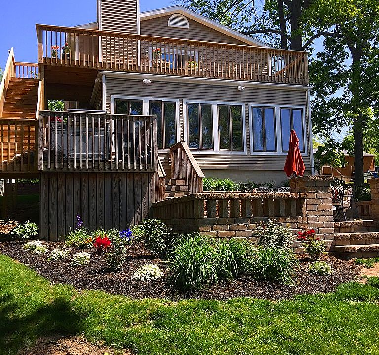 Beautiful waterfront home on Big Cedar Lake! This 3-5 bedroom 2 bath home features 40ft of lake frontage, a beautiful spiral staircase, a 4 seasons room, & a spacious master bedroom. In the master bedroom there is a fireplace & your own private balcony with gorgeous views of the Lake. Many updates including wood burning stove in family room, wood laminate flooring throughout lower level. Outside there is a wonderful patio for entertaining, a great yard, private balcony with stairs that lead to patio, staircase that leads to private dock & plenty of parking. In the Basement there are 2 additional rooms that could possibly make this a 5 bedroom home! Both rooms have closets & windows. Big Cedar Lake is a ski lake & there is access to two smaller fishing lakes. Skiing on Big Cedar is from 1-4.