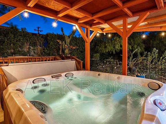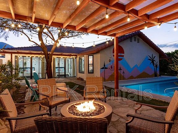 Welcome to Palm Paradise in beautiful Palm Springs, CA! This stunning 3-bedroom, 2-bathroom house is the perfect oasis for your next getaway. Enjoy the convenience of wireless internet, a hot tub, and a swimming pool right at your fingertips. The house is equipped with all the essentials you need for a comfortable stay, including a pack 'n play/travel crib, hangers, heating, and an iron. Safety is a top priority with a fire extinguisher, first aid kit, smoke detector, and carbon monoxide detector on site. Relax in the bathtub or take advantage of the crib and high chair for little ones. Grill up a delicious meal on the BBQ grill, and park for free on the premises or street. Stay cool with air conditioning, and make use of the dishwasher, hair dryer, dishes and silverware, and cookware provided. Step outside to enjoy the patio or balcony and soak in the sunshine. Don't miss out on this amazing vacation rental in Palm Springs!