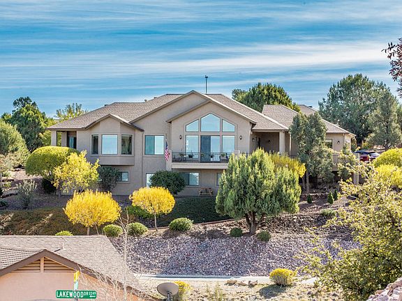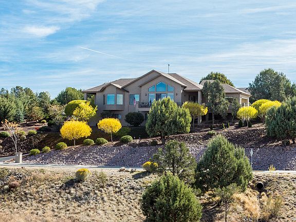 Absolutely stunning custom home in heart of Prescott boasts panoramic long distance views of Granite Mountain & S.F. Peaks all from oversized .67 Acre lot with usable backyard accessible from main level! Features on main level include wall of windows upon entry from family room adorned by floor to ceiling stacked stone fireplace, vaulted 18' ceiling plus formal dining area. Gourmet kitchen boasts massive 4'x7' island with tons of storage, gorgeous granite, knotty alder cabinetry w/ crown molding, wall oven, spacious pantry & 5 burner gas cooktop and informal breakfast nook with views! Massive master suite offers raised height dual vanity, separate tub/shower, large walk-in closet and private view deck. Also on main level; large office, mini-master complete with full bath.laundry room w/sink & ample storage as well as powder room. Lower level separately zoned HVAC features full bath, 2 addl bedrooms, large living/flex room. Park-like landscaping is an understatement very hard to find, walk out ON GRADE in flat, level usable backyard that is fenced and has lush landscaping, mature trees and raised garden beds, gorgeous rock walls, tile & paver patios and walkways, artificial turf and an oversized gazebo with lighting wired in creating the perfect setting for entertaining! Oversized garage is heated, has built in storage cabinets and workbench, insulated doors and epoxy flooring, even additional parking areas beside garage!