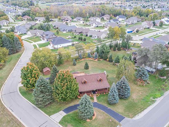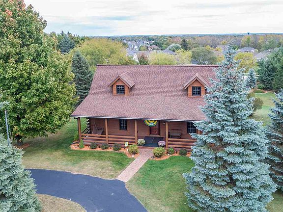 Charming northwoods cottage home with 1/2 log exterior is in pristine condition and prime location. Circle drive in the front approaches this cape cod beauty with front porch, majestic pines, and beautiful flower planting on nearly an acre of land. Interior features wood cathedral ceiling in great room with brick fireplace, loft, 1st floor master bedroom, and beautifully updated kitchen with granite counter tops and stainless appliances. Welcoming 4 season room and large deck overlooking the expansive backyard. New Anderson windows throughout, central air, matching shed. Amazing.