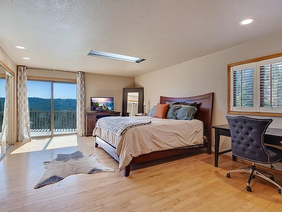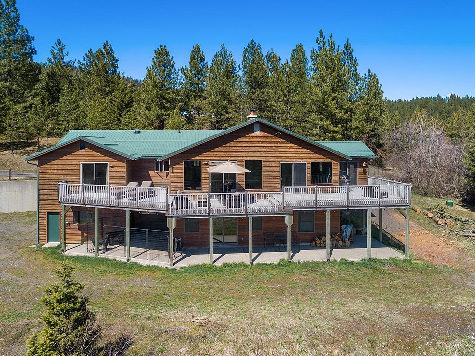Coeur d' Alene Home on 13 beautiful acres with a creek and forever views! 3992 sqft, 5 bedrooms, 3 bathrooms and a open floor plan with floor to ceiling windows. Living room with vaulted ceilings, skylight, and fireplace opens to expansive deck great for out door living space. Well appointed kitchen has granite counters, wolf appliances, kitchen island and breakfast bar. Lovely sunroom and dining room all with mountain and lake views. Main floor master suite with 2 closets, huge tile shower, dual vanities and access to deck with views and southern exposure. Fully finished walk out basement with 2 bedrooms and bath, private entrance and covered patio. Spacious laundry room with sink, adjacent to 2 car oversized attached garage. Lower level has huge 3 bay attached shop/garage. No CCRs!