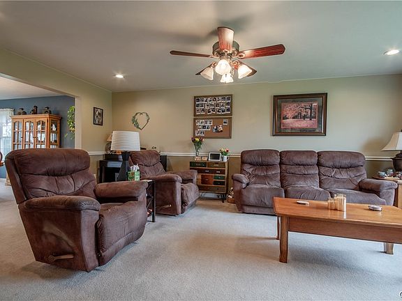 Welcome to your dream home nestled on 2 acres of serene land! This stunning 5-bedroom, 3-bathroom residence offers luxurious living and ample space for the whole family. On the main floor, you'll find a convenient bedroom perfect for guests or as a home office. The heart of the home lies in the kitchen, boasting granite countertops, stainless steel appliances, and an inviting eat-in area, complemented by a formal dining space for special gatherings. Ascend to the second floor to discover a full primary suite complete with a brand-new primary bathroom and a spacious walk-in closet, providing a private oasis for relaxation. Three additional bedrooms offer comfort and versatility for family members or guests. Enjoy the convenience of first-floor laundry and the potential for additional living space in the full dry unfinished basement, currently utilized as a recreational area. The two-car garage provides room for vehicles and extra storage, with additional space in the loft above. Plus, a large shed in the backyard offers even more storage options. With its blend of modern amenities, expansive outdoor space, and thoughtful design, this property is ready to welcome you home!