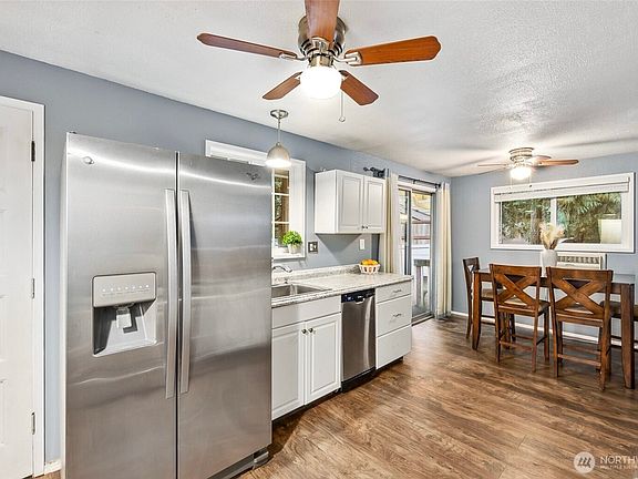 Tranquil living in this cozy renovated Clearwood rambler! Clearwood is a gated community filled with amenities such as 3-lakes for fishing, swimming, and boating! BBQ awnings, play parks, and walking trails are scattered throughout! Enter the home into a flexible great room with a spacious granite furnished kitchen, stainless steel appliances, and living area! Plenty of natural light, warmed with an electric fireplace. Enjoy the nature around the firepit in the large partially fenced backyard. This home matches value with affordability! Come enjoy camp-like living near local commerce and JBLM’s East Gate!