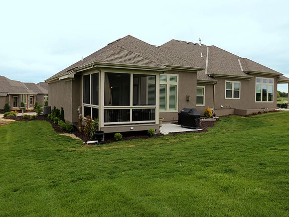 Stunning Villa in West Olathe with Tons of Upgrades!!! This all stucco Maintenance Provided Villa features an open kitchen & living area with high ceilings & beautiful hardwoods. Kitchen provides upgraded stainless appliances including a dual fuel range, beautiful granite countertops with tiled backsplash & kitchen island. French doors open to screened in porch & a patio backing to greenspace. Master Bath offers double vanity, beautiful tile work throughout & walk in shower. Double Pane Windows and Plantation Shutters. Finished Basement with large Rec room for entertaining, guest bedroom and plenty of storage space.. Save time and money vs. buying new with this barely lived in Villa. Hurry this one will not last long!!!