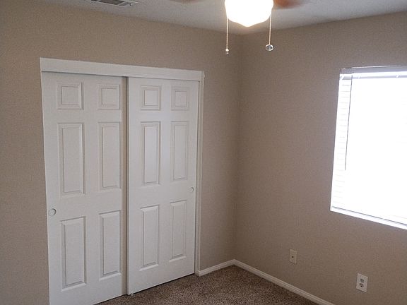 Freshly painted, new blinds, 2 car garage, large fenced yard, A/C, laundry hookups in garage, refrigerator included. In a quiet area. **open house Sunday March 16th 10-2pm** One year lease. Tenant pays all utilities except trash.
