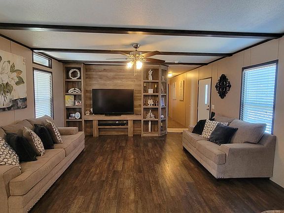 Lovely 3 bed, 2 bath manufactured home built 2017 on a spacious 0.75 acre lot. No neighbors in back. Mature trees, fenced yard w/ automatic gate opener. Huge covered patio & deck w/ a beautiful backyard pavillion, perfect for entertaining! Extended asphalt driveway, massive metal carport & large shed in back. Appliances & furniture will convey at full price offer. Home offers elegant interior, beautiful laminate flooring, open layout, breakfast bar, farm sink in the kitchen, lots of cabinet space, large main bedroom w/ walk-in closet. Master bath has double vanity, separate tub & shower. Quick access to I-37 & Loop 1604, close to San Antonio.