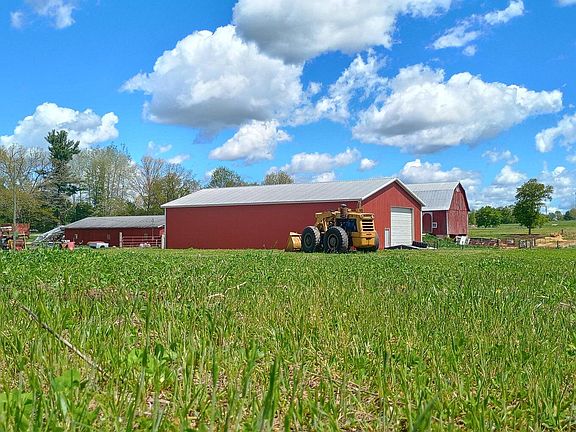 The spacious formal dining room coupled with the adjoining oversized foyer/entry area is ideal for entertaining and hosting large gatherings. The 3 bedrooms, 3.5 Bathrooms include the large Master Bedroom/Bathroom with walk-in closet and bonus office space, you will also find a main floor laundry room. Meander outside and once you look beyond the children's play area you will find the already established perfect place to raise your animals and/or run your business here on this one of a kind Pure Michigan Farm. Garden is planted for the year. Orchard is thriving and berries are ready to be picked. 55 Rolling acres of fenced lush hay land complete with electric fencing, water hydrant and spring fed pond. 15 acres of Hardwoods for maple syrup and set up with deer blinds. Additional information on the outbuildings is as follows: 1 traditional barn and 2 large workshops, insulated, heated with water and electric. 220Amp service with 3 phase available and a 2-Story storage barn. Please be sure to read the Seller provided "Features and Improvements" write up for more details. Don't hesitate to schedule your showing today!