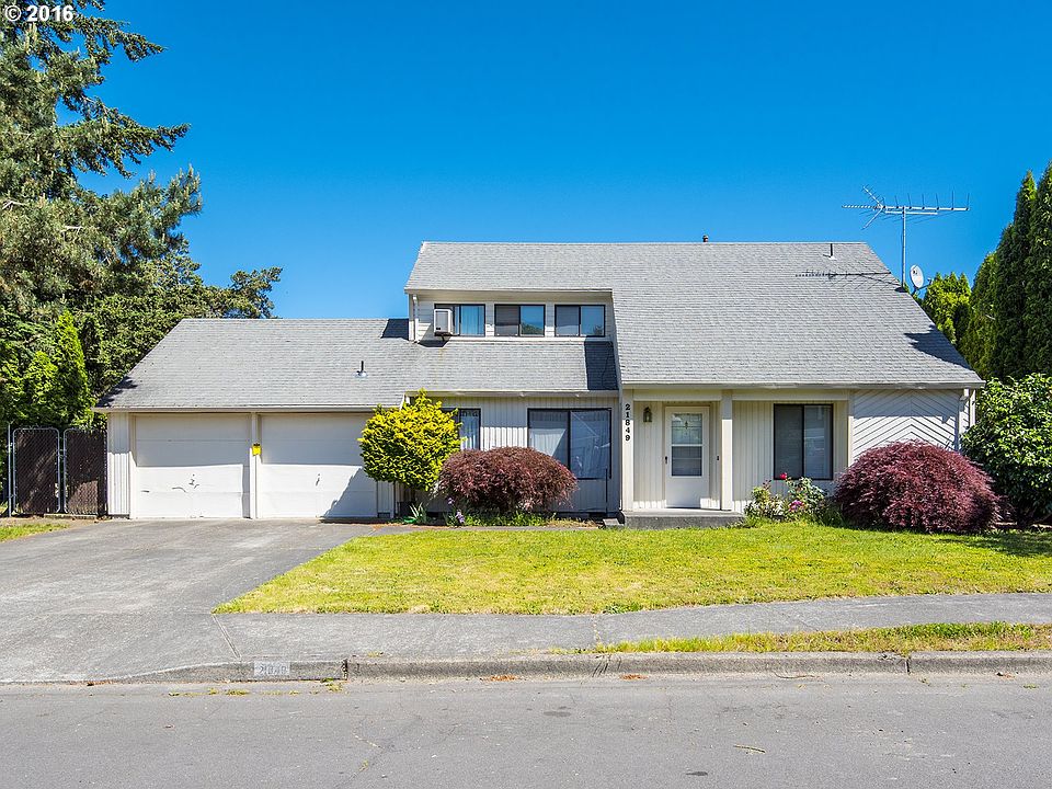 Great Opportunity for a larger home. Built in 1980, solid home ready for your updates. Master w/bath on main, very large family room upstairs with vaulted ceiling and skylights. 3rd bedroom upstairs with huge walk-in closet/storage. Potential to take advantage to stubbed-in plumbing as well. Covered patio, tool shed & 8,700 sqft corner lot. Potential RV parking behind gate.