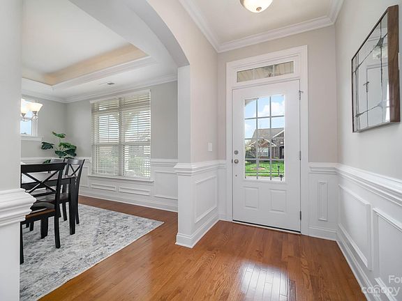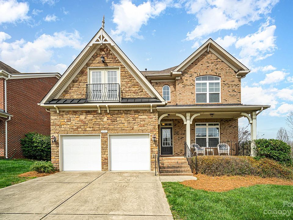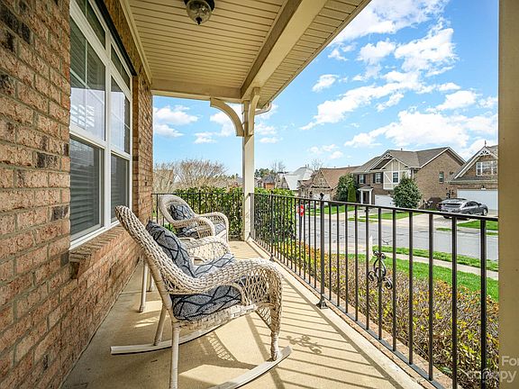 Gorgeous brick & stone exterior with European accents. Covered front porch & wide side-yard, sweeping corner lot. Inside is bright, open, & fresh. Neutral, modern paint color accents the classic trim work & arched doorways. Medium-tone hardwood floors thru entire main level. Open kitchen design; stainless appliances, granite counters, & rich cappuccino colored cabinetry. Main level bedroom suite perfect for guests. Grand owner’s suite has multiple large windows, vaulted ceiling, two walk-in closets, oversized garden tub, & dual sinks. Spacious secondary bedrooms with plenty of closet space; 5th bedroom has charming Juliet balcony. Rear deck perfect for outdoor dining. Low maintenance yard with established landscaping for added privacy. Christenbury is one of N Charlotte’s best-known upscale communities, luxurious clubhouse, pool, & playground. The surrounding area offers many shopping & dining options. Very well maintained; brand new architectural shingle roof in fall of 2022.