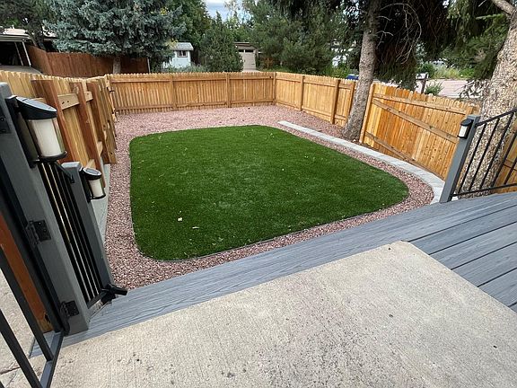 Superb completely updated home. Granite kitchen countertops, new cabinets, beautiful wide plank hardwood floors throughout entire home. 3 large bedrooms, 2.5 baths. Large balcony deck off living area in back, and deck and fenced turf yard in front of home. New garage door, new paint inside and new siding outside, new roof with hail resistant shingles. 1 car attached garage. Cheyenne Mountain School district. Washer and dryer included, but all maintenance and repairs will fall on tenant. 1 small dog allowed (under 30lbs) with monthly pet rent and a deposit. No co-signers allowed with this home.