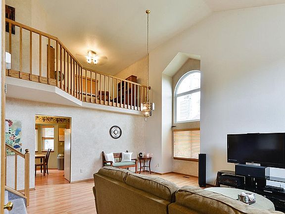 Lovely 4 bedroom, 3 bath, 2 car stucco home on a corner lot with great mountain views out front Lots of windows allowing for plenty of light. Main level Great Room, hardwood flooring, beautiful brick gas fireplace. Master bedroom has vaulted ceiling with ceiling fan, walk-in closet and attached 5 piece master bath with jetted tub. Also upstairs are 2 more bedrooms, a full bath and a loft that would be perfect for an office area or kids play area. The finished basement offers 1 more bedroom and a rec room. Freshly painted. Large lot with 2 wood decks (18x12 and 15x10) perfect for entertaining. This beautiful home has newer windows, high efficient furnace, A/C, humidifier, new carpet, bay window and plenty more. Just move in and enjoy.