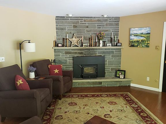 Did you say you want a ranch home in the common school district with LOW TAXES? This is the one! We have a master suite with an additional 3 bedrooms, 2.5 bathrooms, large kitchen with plenty of cabinets with a one of a kind back splash. Huge living/dining room with amazing large windows, new brazillian cherry floors and a fireplace with a wood insert for those cozy evenings. There is a door off the living/dining room to a rebuilt multi tier deck makes this the perfect home for entertaining family and friends. There also is a large family room in the lower level along with a laundry/half bath and a workshop/storage room. Lots of replacement windows, a 2 year old roof and new water heater adds to value of this fabulous home. Beautiful landscaping, stamped concrete sidewalk and a Koi pond makes this a one of kind home that you will love.