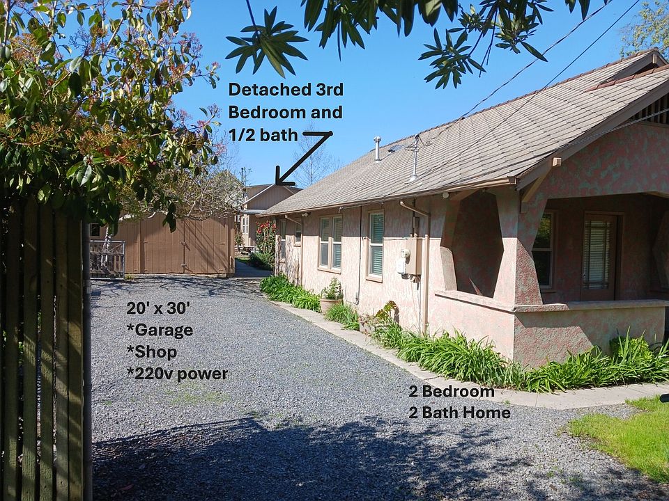 3 Bedroom 2-1/2 Baths-- Consisting of a 2 Bedroom 2 Bath House with a DETACHED 3rd Bedroom / Office / In-law with 1/2 bath Please Read -NO Dogs, NOCats, No Smoking. Thank you Two Bedroom Farm House All walls and celings insulated. Windows dual pane upgrade. Jack and Jill bathroom between bedrooms. Living room Dining room combination Large kitchen; NEW dishwasher.NEW refigrator, microwave over oven. Large utility room with Washer and Dryer, closet storage Large picture window in kitchen to view of back yard with camellias. Large Yard with garden boxes Detached 3rd Bedroom 1/2 bath downstairs. Walls, Celing, Floors insulated. Dual pane windows. Counter with sink Upstairs loft with closet. Covered deck out front adds to lving space, and connecting walkway to house. Detached Garage/Shop/Storage 20' x 30' -- 600 square feet aproxmately 3 workbenches with many electrical outlets, one bench with large vice. 220 volt electrical outlet. Lots of shelving. Please-No Dogs, No Cats, No Smoking. Renter responsible for utilities. 3000 security deposit Renter insurance not required but suggested.