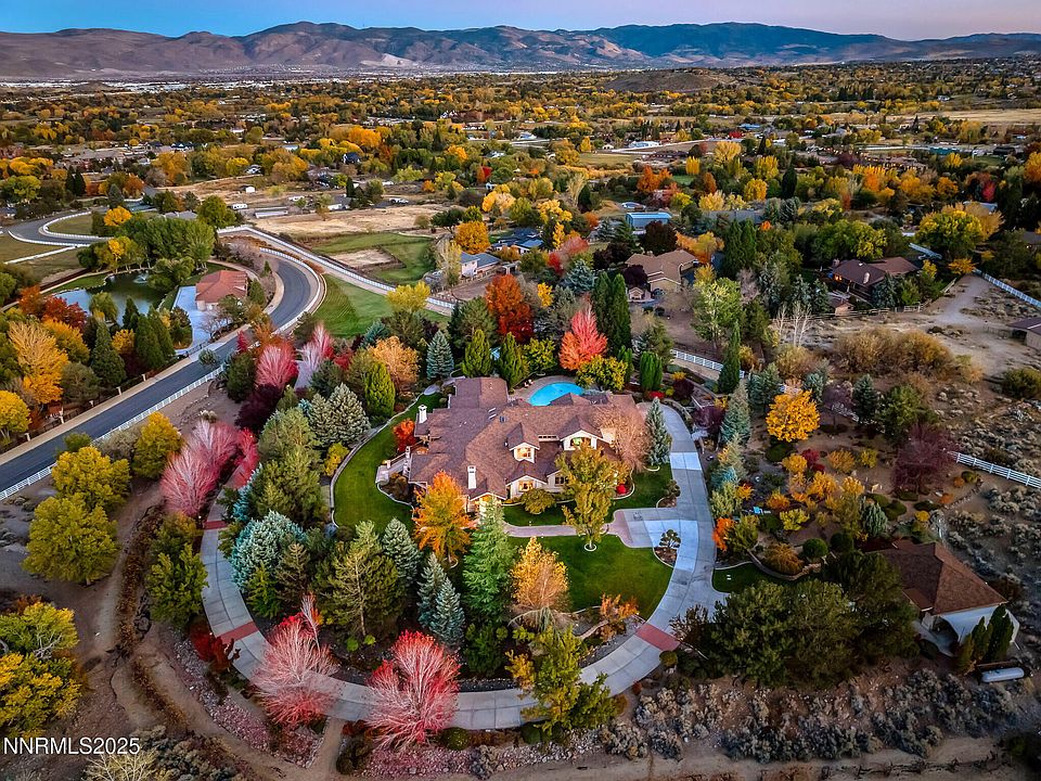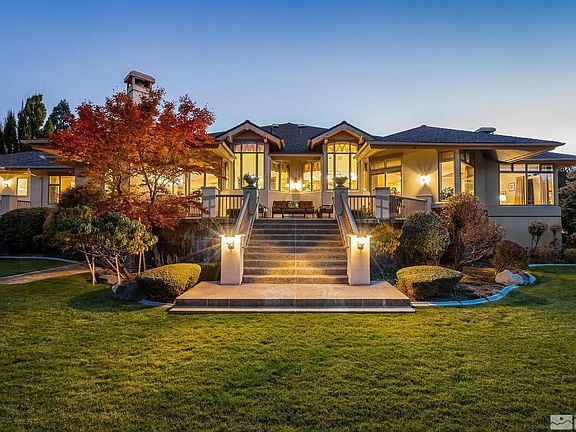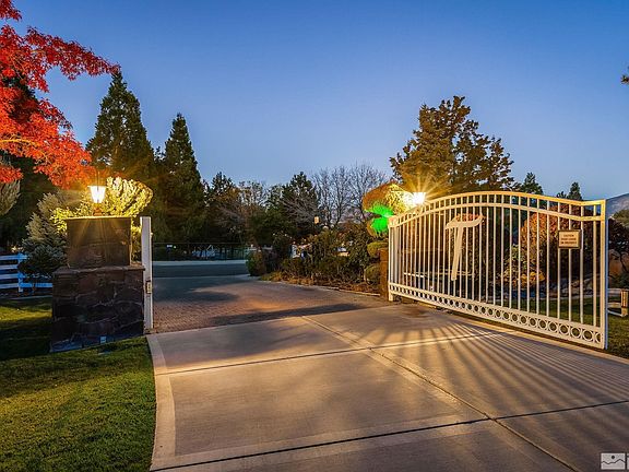 Experience unparalleled luxury and privacy in this extraordinary old south suburban Reno Legacy Estate. Featuring 7,300 sf of single level living plus 2,800 sf of upstairs space, including a massive game room, kitchenette, full bath, and hobby or exercise room, this gated oasis spans 6.84 acres of meticulous landscape. With 5 en-suite bedrooms (yes, all are on the main floor) including two master bathrooms - one with an attached yoga room - there is plenty of space and privacy for everyone. The main level also features the primary living spaces, a stately wet bar with flawless cherry hardwood flooring, a library with built-ins, a separate study, mudroom, and laundry room. Entertain effortlessly on the back patio surrounding the heated in-ground pool or grow a year-round garden in the 510 sf greenhouse that has electricity, heat, and running water. Additional features include an oversized 3-car garage, a detached 2-car garage with workshop, and covered RV parking. The lush landscaping includes two vineyards, too many mature trees to count, vibrant roses, and colorful shrubs - all irrigated by a private well and 12-acre feet of surface water rights. Modern amenities include a nearly new roof, updated mechanical and pool systems, one-year-old electric CellGate entry, automatic generator, and a discreet solar field that banks credit with NV Energy. Atop a tree-lined drive, this magical estate offers sweeping views of the foliage and serene valley beyond. Minutes from shopping, dining, the airport, and top-rated public and private schools, this rare northern Nevada property is just 45 minutes from the shores of Lake Tahoe and less than an hour from the area's best skiing, hiking, and biking terrain. 2185 Kinney Lane is gorgeous - and ready and waiting for someone new to call it home.
