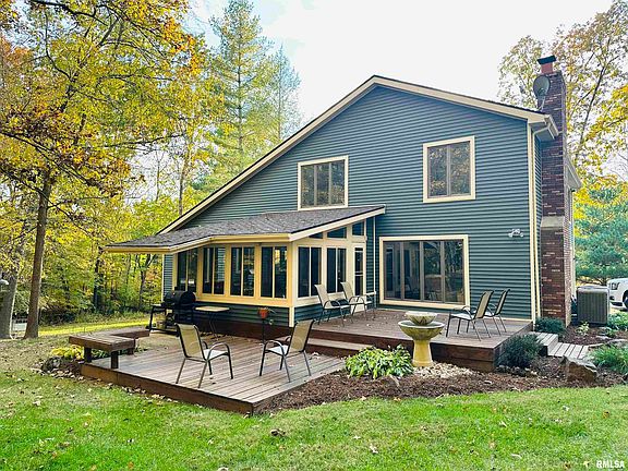 Peaceful living close to town. This well maintained 4 bedroom, 2 1/2 bathroom home is situated on 2.7 acres. The main level provides a cozy living room with a wood burning fireplace, built ins and floor to ceiling windows. From the kitchen, there are formal and informal dining areas, a large family room with vaulted ceilings and large windows for natural light. The 3 season room is a perfect spot to relax while being surrounded by the outdoors. There is a powder room and laundry room located on the main level as well. Upstairs you will find four bedrooms. The master bedroom has a large walk-in closet and an updated ensuite with double vanities topped with Corian and a heated tile floor. The full hallway bathroom has also been updated with a new double vanity with Corian countertops and new tile flooring. The detached renovated barn makes for extra covered parking with garage door and opener. The barn is currently used as a workshop and has a wood stove for heat. Roof is 10 years old, siding and gutters 8 years, gutter guards 2023, Both HVAC systems have been replaced, 2022/23. Water heater and water softener 2023, Septic was pumped and new pump 2023. Road resurfaced 2023. This home is ready for you, call today to schedule a private showing!